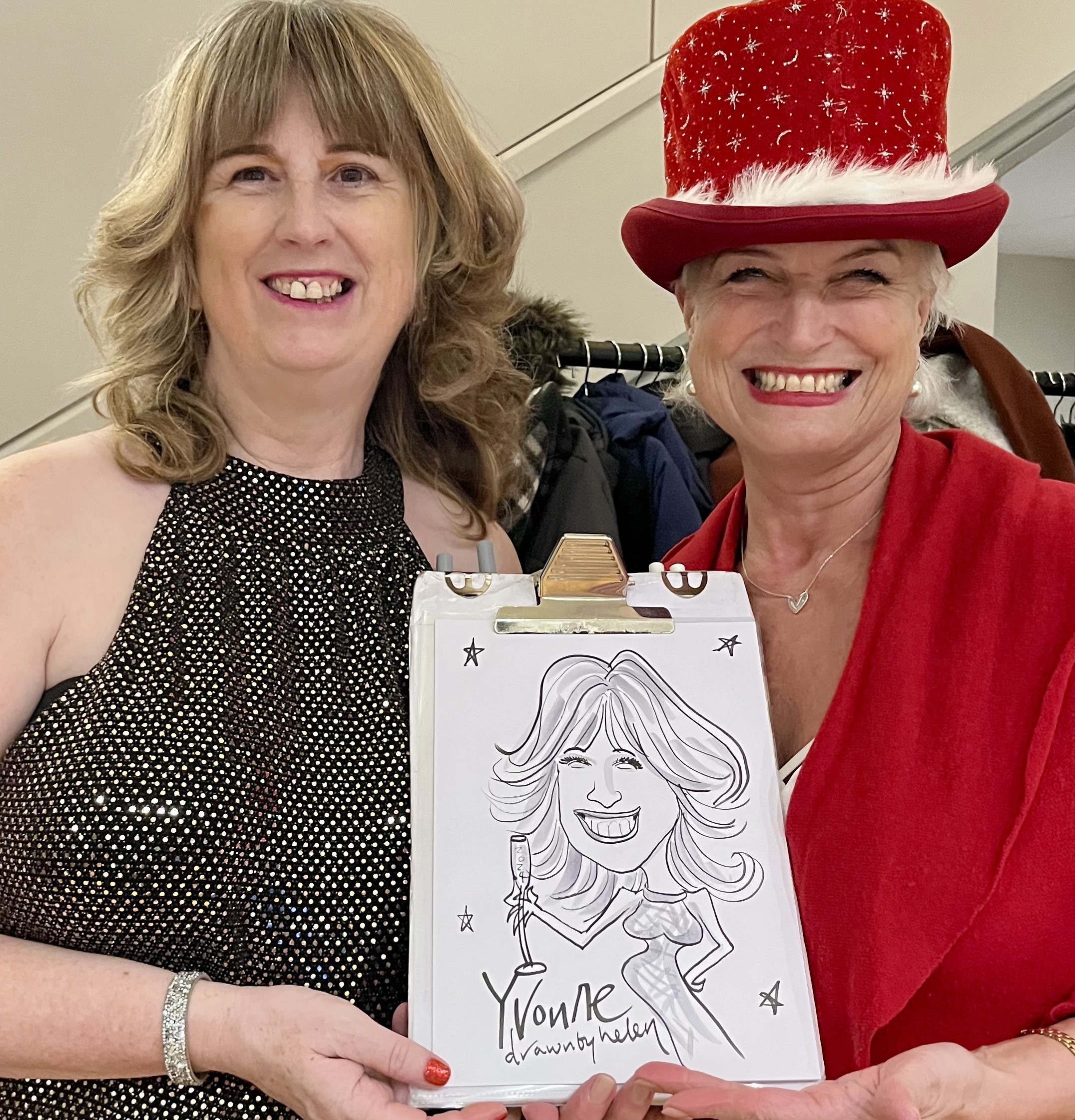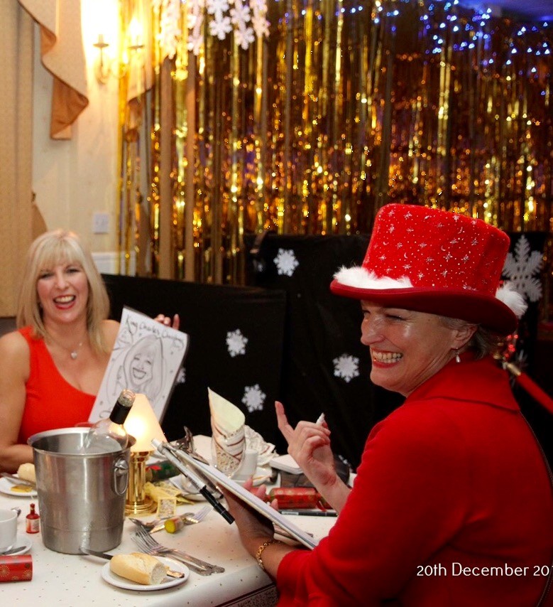 Helen provides festive entertainment for Christmas parties, corporate functions, school fairs and seasonal celebrations. As a professional caricaturist with decades of experience, Helen captures guests in quick, cheerful portraits that spread laughter and holiday spirit.